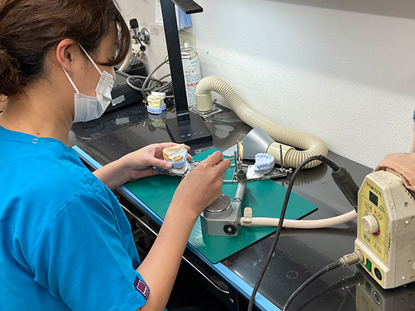 医院隣に技工室を併設。義歯や被せ物などを外注に出す時間が短縮できます。