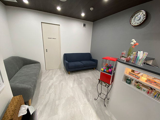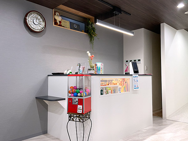 待合室にはウォーターサーバーや、頑張ったお子様へのご褒美ガチャを設置しています。